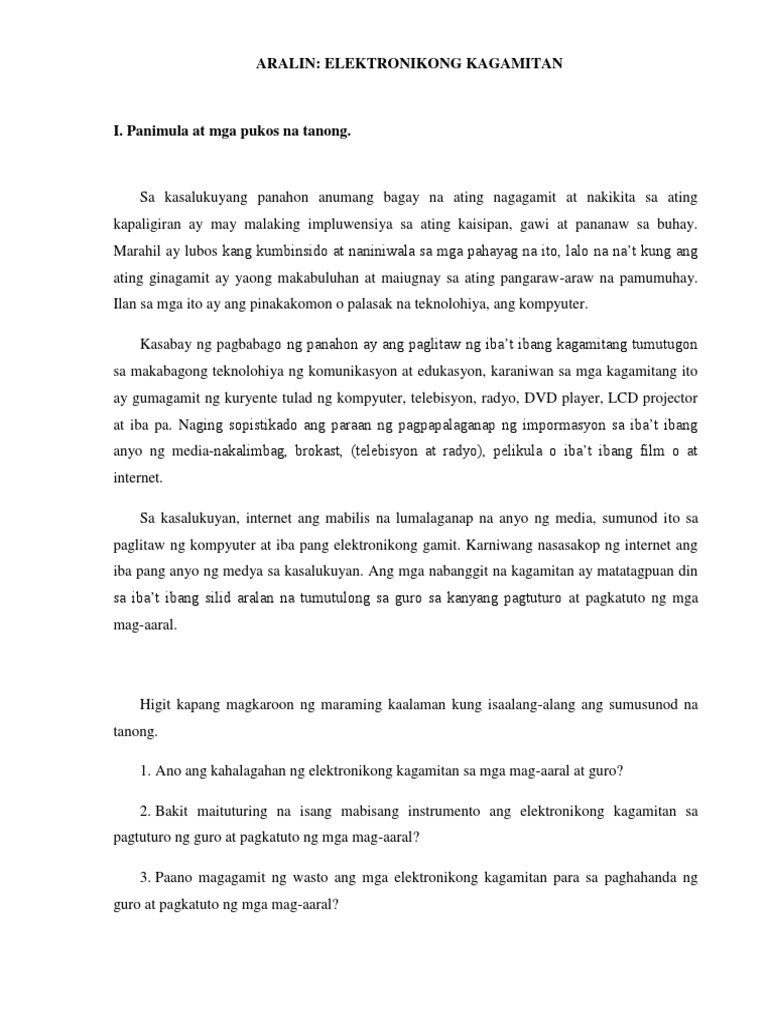 Doc Ang Gamit Ng Elektronikong Kagamitan Sa Pagtuturo Ng Asignaturang Filipino Nikky Mag Asin Academia Edu
