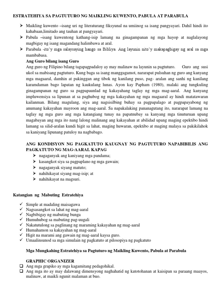Estratehiya Sa Pagtuturo Ng Maikling Kuwento Pabula At Parabula Pdf