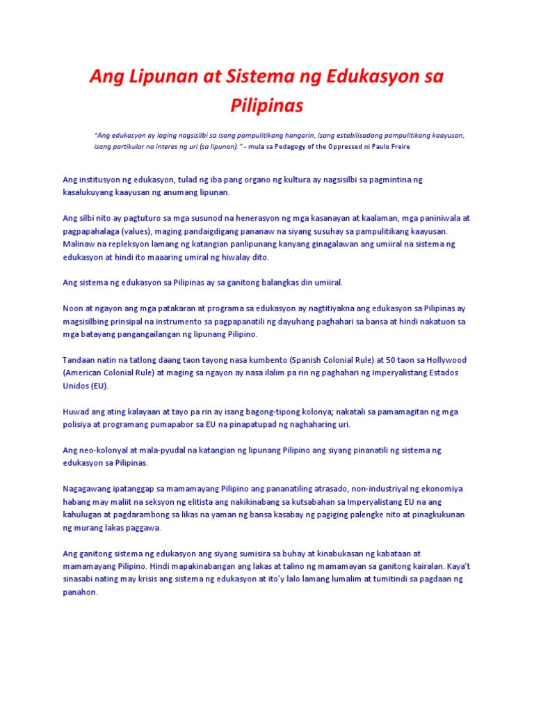 Sistema Ng Edukasyon Sa Pilipinas Sa Kasalukuyan Saedukasyon