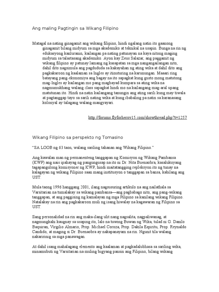 Ang Maling Pagtingin Sa Wikang Filipino Pdf