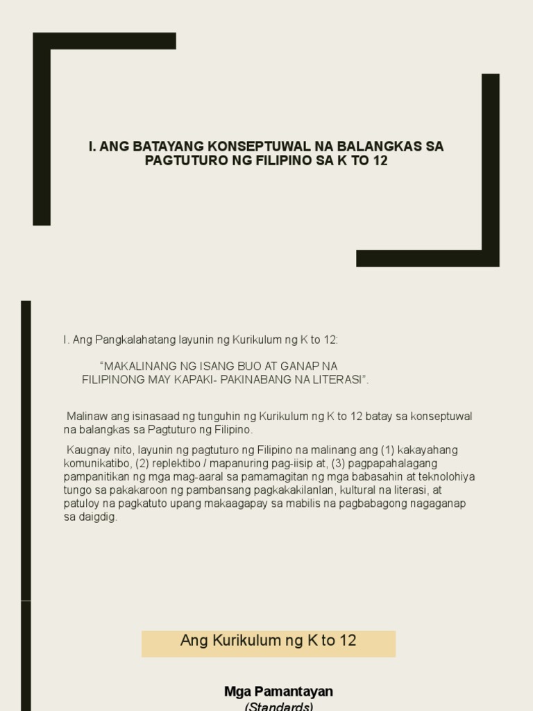I Ang Batayang Konseptuwal Na Balangkas Sa Pagtuturo Ng Filipino Sa K To 12 Pdf