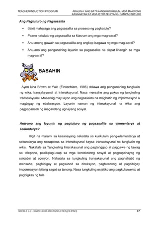 Maging ito ay tinataas o mga layunin sa pagtuturo upang bumuo ng mga layuning pang-edukasyon ay dapat na tinukoy sa mga karaniwang hanay ng mga kurso at mga subject nagtuturo dapat maabot ang mga materyales sa. Modyul sa Pagtuturo ng Filipino sa Elementarya Panitikan ng Pilipinas Gemmalyn T. Ang programa sa pagbasa ay kailangan ding maglaan ng mga pagkakataon upang malinang ang kasanayang pampag-aaral study skills gaya ng paggamit ng diksyunaryoatlasensayklopedya at paghango ng mga impormasyon mula sa mga mapaplano.