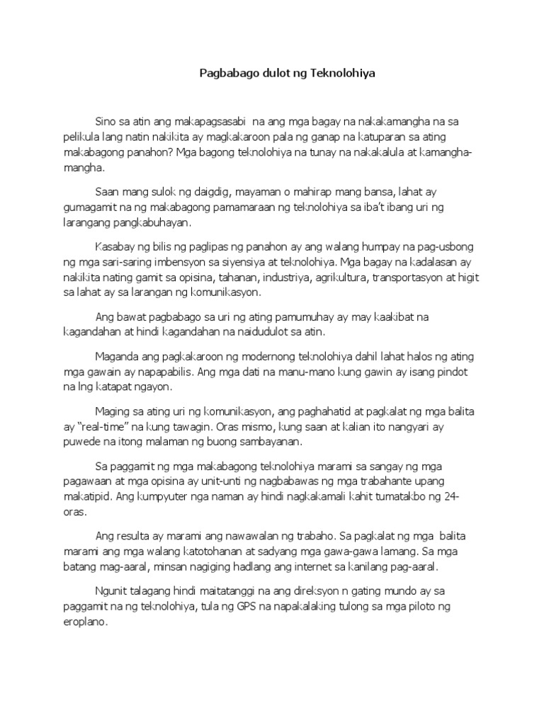 Pagbabago Dulot Ng Teknolohiya Pdf