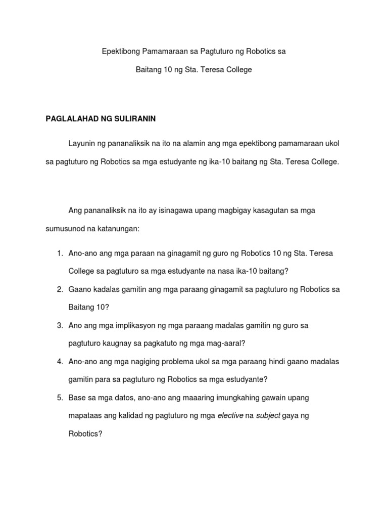 Pamamaraan ng pagtuturo suliranin. Ayon kay Greg 2007 ang isang pamaraan upang maging epektibo ang pagtuturo ay dapat magkaroon ng mga katangian na mga sumusunod. Ipakita sa klase ang malaking mapa ng Pilipinas. Paglalahad ng Suliranin at Layunin Ang pangunahing suliranin sa pagsasagawa ng pag-aaral na ito ay.