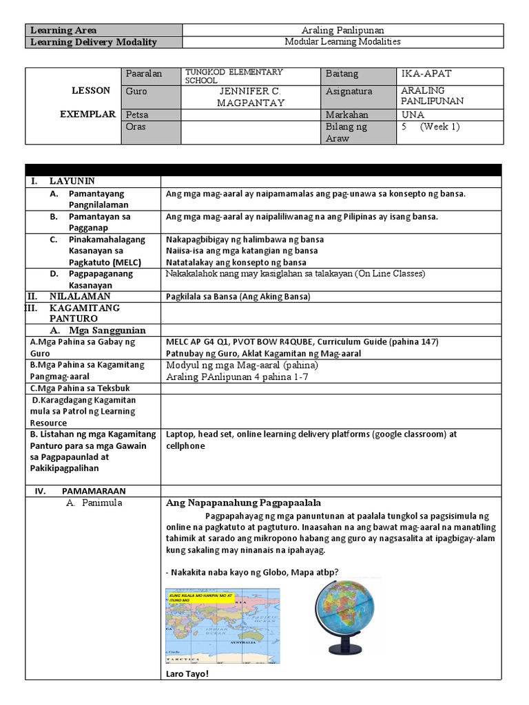 Mar 28 2014 Sa ibang salita layunin ng pagtuturo ng K-12 Araling Panlipunan na malinang sa mag-aaral ang pag-unawa sa mga pangunahing kaisipan at isyung pangkasaysayan pangheograpiya pampulitika ekonomiks at kaugnay na disiplinang panlipunan upang siya ay makaalam makagawa maging ganap at makipamuhay. Banghay Aralin sa Pagtuturo ng Araling Panlipunan I Quarter II I. BANGHAY SA PAGTUTURO NG ARALING PANLIPUNAN.