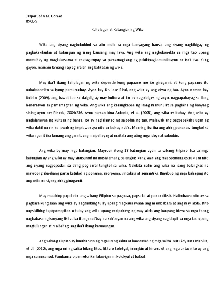 Sintesis Kahulugan At Katangian Ng Wika Pdf