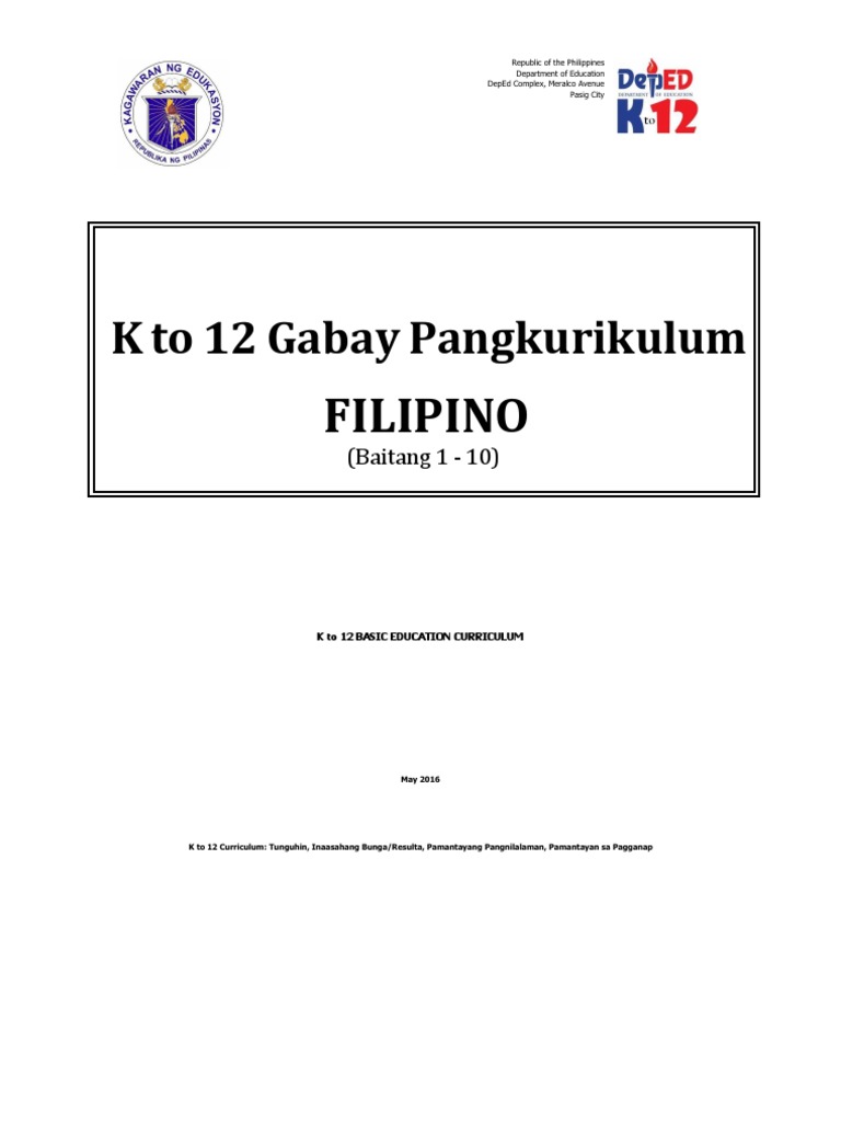 Filipino Gabay Pangkurikulum Baitang 1 10 Disyembre Pdf
