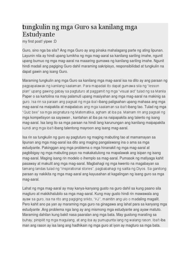 Tungkulin Ng Mga Guro Sa Kanilang Mga Estudyante Pdf